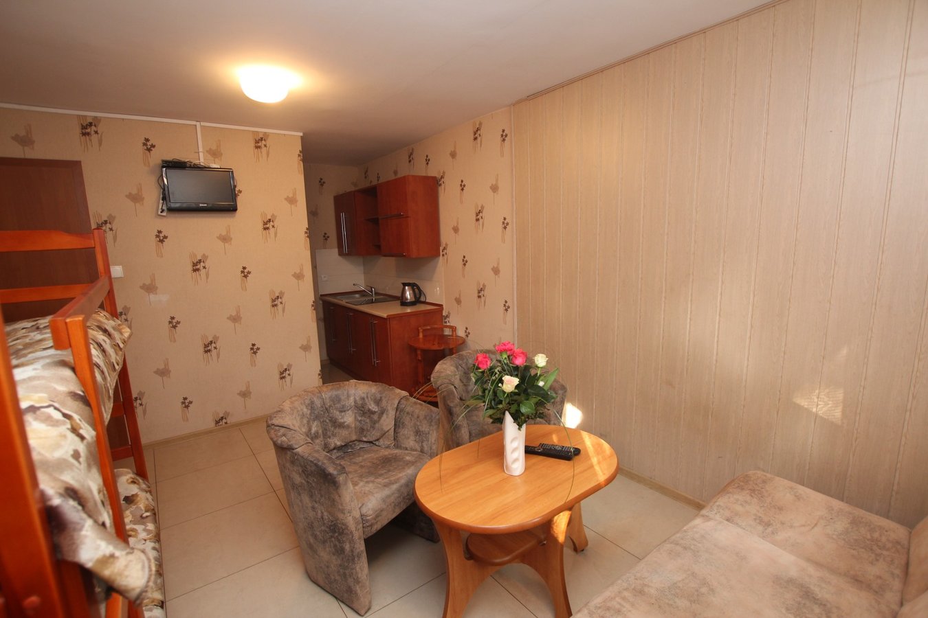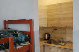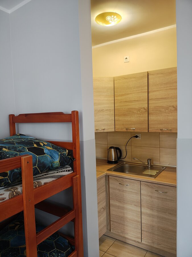 Pokój na I piętrze. Pokój z aneksem kuchennym i łazienką (zestaw wypoczynkowy + łóżko piętrowe).
