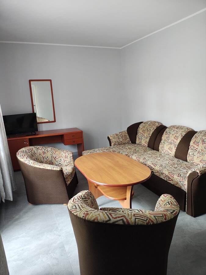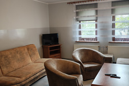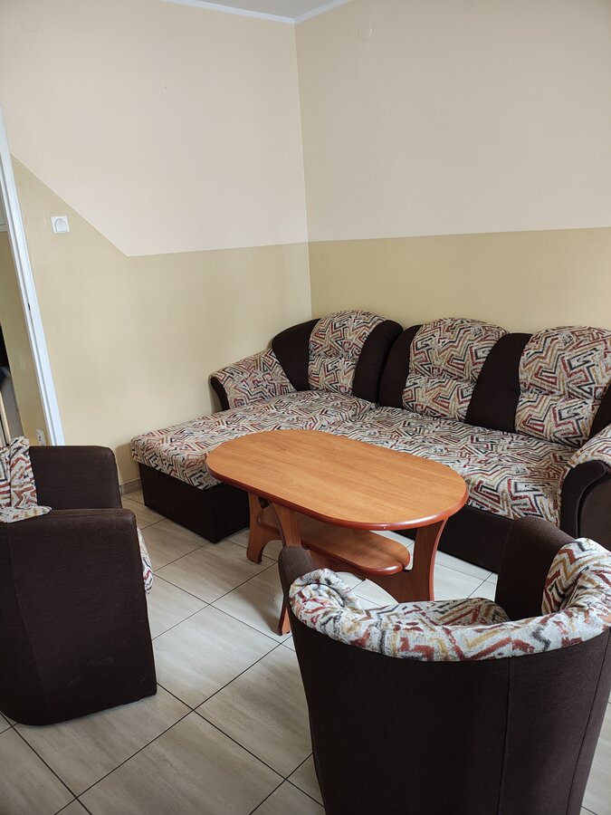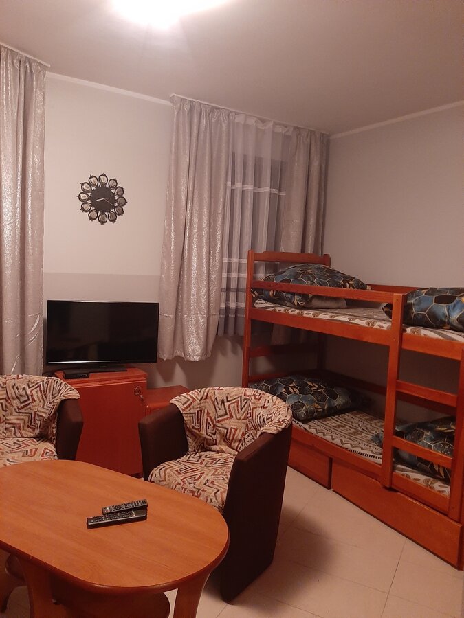 Apartament nr 22 znajduje się na piętrze w budynku B. Zestaw wypoczynkowy + łóżko piętrowe.