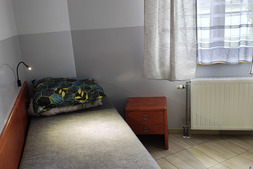 Pokój nr 26 znajduje sie na parterze w budynku B. Pokój z łazienką i łóżkiem małżeńskim .
