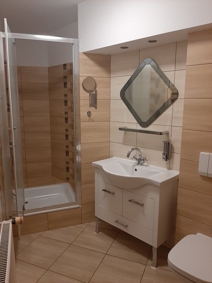 Apartement nr 21 znajduje sie na piętrze w budynku B. Dwa pokoje, kuchnia, łazienka, balkon. Sypialnia - dwa łóżka, pokój dzienny - zestaw narożny rozkładany.